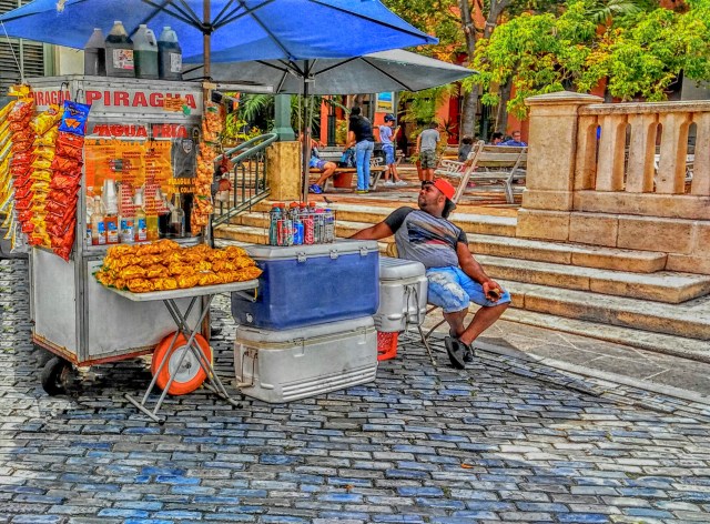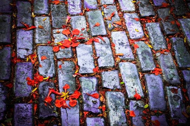Los adoquines del Viejo San Juan guardan las huellas centenarias de una época colonial española llena de tradiciones religiosas y culturales, conflictos políticos así como las alegrías y desencantos que envuelven el mundo cambiante de hoy. Las flores del arbol de flamboyán dan el toque fresco que la naturaleza comparte con los que caminan por ahí.