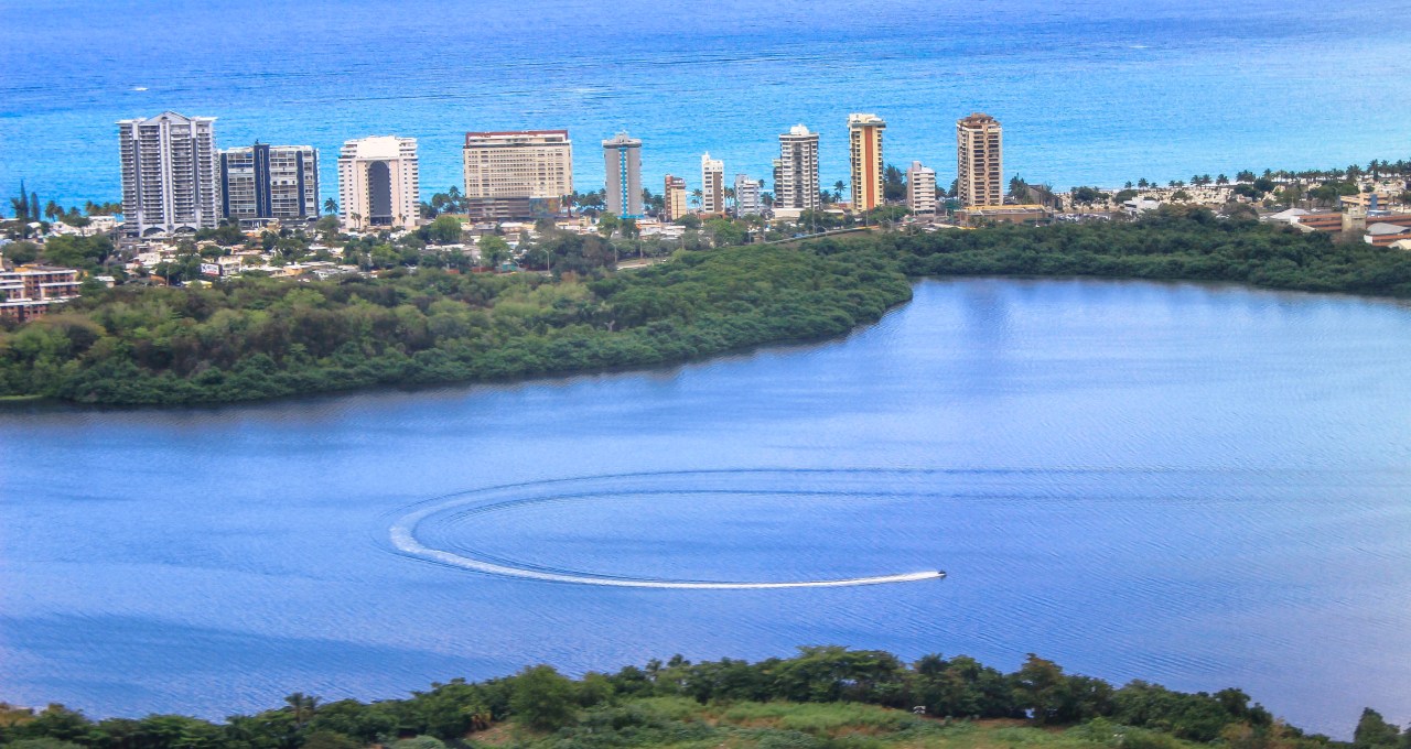 A peaceful view of Cataño’s Bay, showing in the background the city of San Juan.